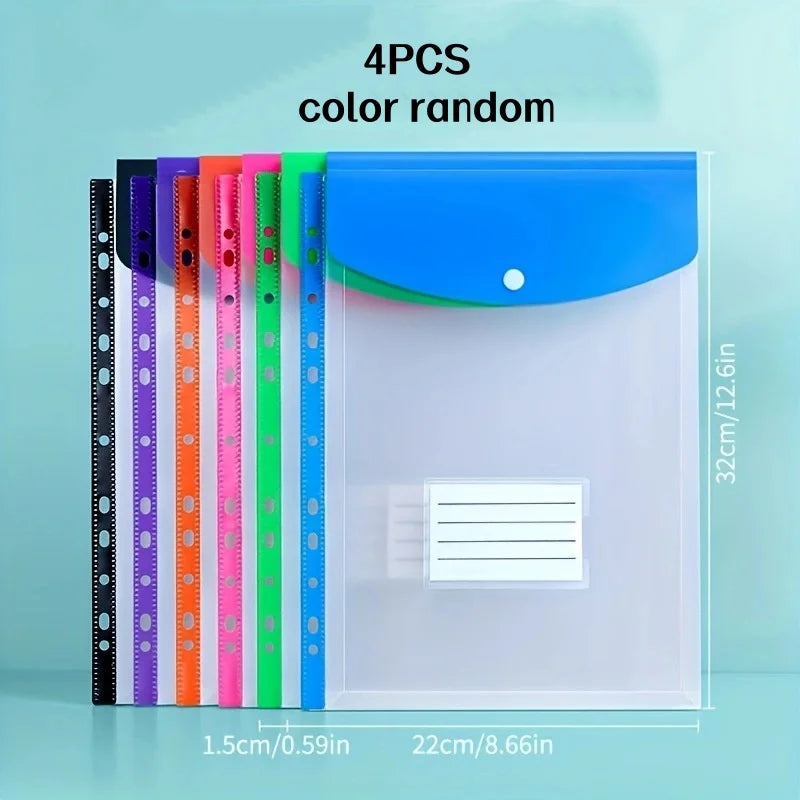 4-Pack Random Colors A4 Expanding File Folder with Button 11-Ring Binder Pockets - Heavy-Duty Pp Plastic File Organizer Durable A4 Binder Organizer Suitable for School Office Home Organization