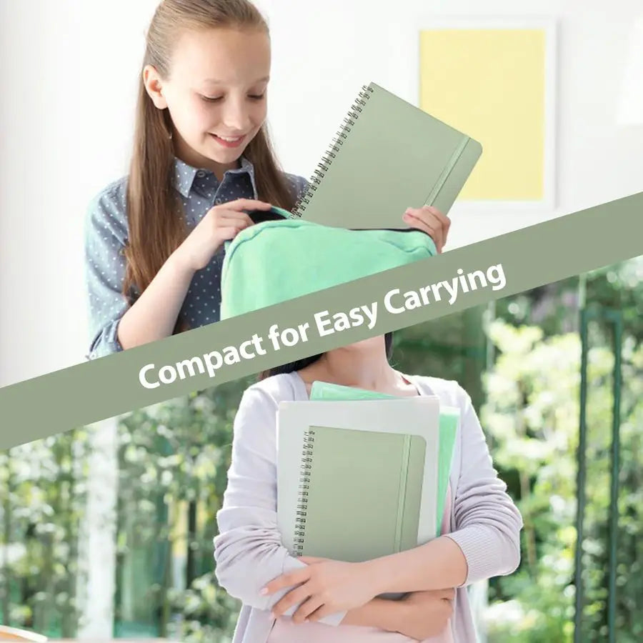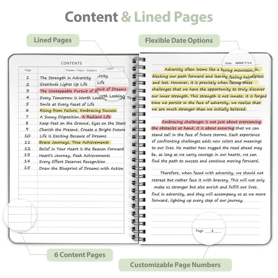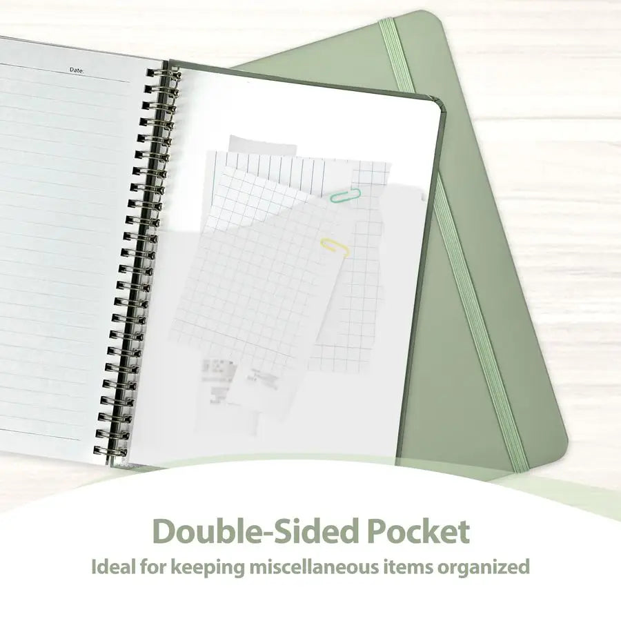 PREMIUM PAPER Our spiral notebooks feature 100 GSM thick FSCcertified woodbased paper, offering a smooth writing surface that prevents ink bleedthrough. Perfect for all pen types ballpoint, gel, and fountain pens each page includes a convenient date header for easy tracking. An ecoconscious choice that doesnt compromise on quality.